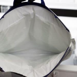 The ONE DAY isothermal bag is a metallized isothermal bag composed of a multi-layer structure (metallized PET film – expanded PE foam – white inner PE film certified for food contact according to the 1935/2004/CE and 10/2011/UE regulations) in which a thin layer of refrigerant is inserted, evenly distributed on the 2 sides of the bag